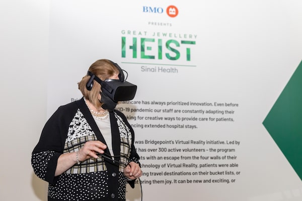 Great Jewellery Heist co-chair Janice O’Born experiences a VR module used at Bridgepoint Active Healthcare.Ryan Emberley/The Globe and Mail