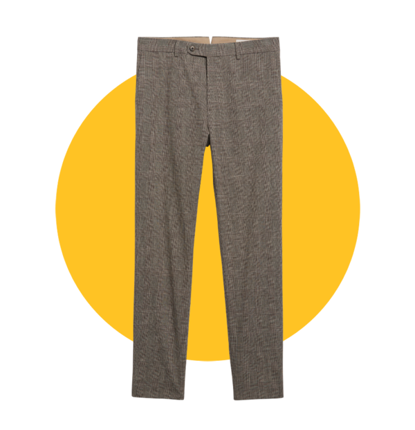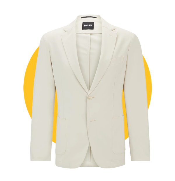 Ideal for travel and active days, this packable blazer features a wrinkle-resistant, water-repellent stretch fabric made with a polyester-and-elastane blend. There are matching trousers, too, if you’re looking for a machine-washable suit.