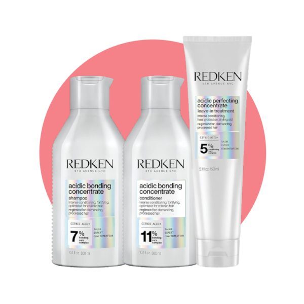 Redken Acidic Bonding Concentrate shampoo and conditioner, 300 ml, 33.99 each; leave-in treatment, 150 ml, $39