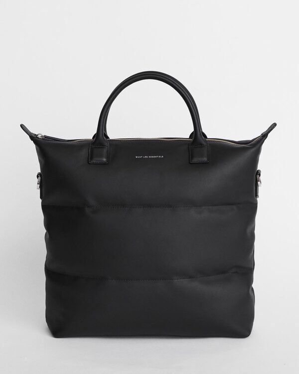 Two essentials become one as the everyday tote adopts the quilted form of a puffer coat. Not one to shy away from an over-the-top look, Moncler’s insulated puffer bag mirrors the design of the brand’s signature padded outerwear. Want Les Essentials gives its O’Hare style a plush revamp with a leather body, while Ted Baker plays with subtle colour and print in a carryall that will easily take you through a winter getaway.