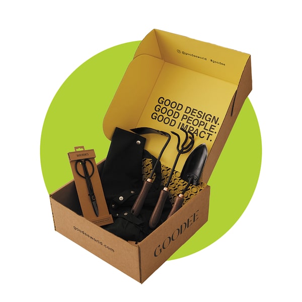 Sold by Goodee, a marketplace and Certified B Corp, this chic yet practical gift set includes an organic cotton apron and four handsome gardening tools made of stainless steel and walnut. Goodee The Harvest Edit, $215 through goodeeworld.com.
