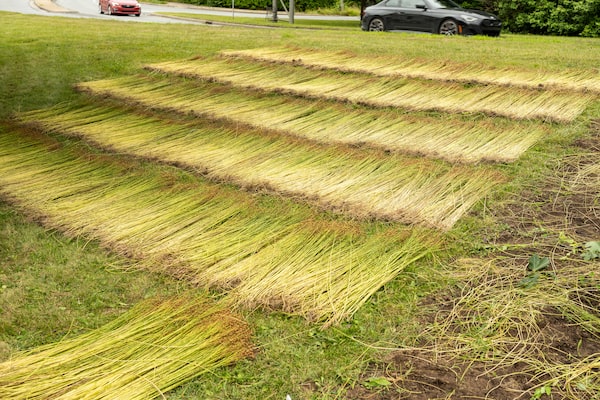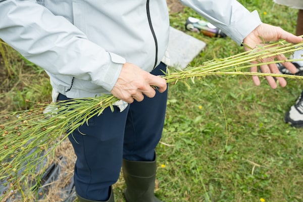 Flax is harvested at Common Roots Urban Farm in Halifax. The Canadian linen industry is minuscule, with the total land dedicated to fibre flax estimated to be fewer than 10 acres.