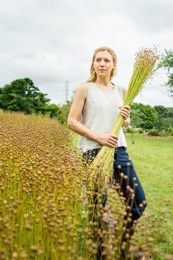 The answer is partially demand, says Hyland. “There have to be people saying, ‘I want natural fibres from North American farmers.’ ” Financial investment is also key, to kick-start a processing industry – not a huge one, at least at first, but enough that farmers have a market for their fibre-flax crops. “It’s really expensive to start an industry,” says Patricia Bishop, who co-owns TapRoot Farms. “People would love to be able to access Canadian-made linen fabric and I would love for it to exist, but I need a team of people to come and help.”