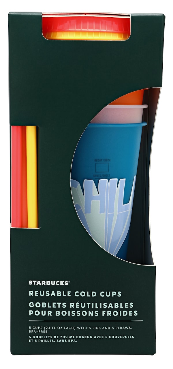 Starbucks reusable cold cups with straw and lid, $23.50 (five a package) at Starbucks.