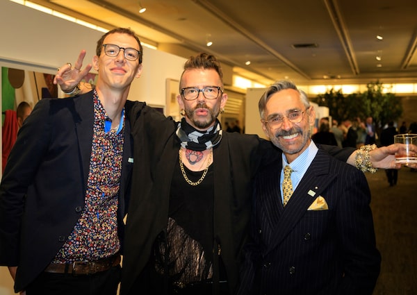 A record $1.8-million was raised at the 41st edition of Splash, the most important annual fundraiser for Arts Umbrella, the Vancouver-based non-profit organization which is dedicated to providing arts education for young people. Some 600 guests were in attendance for the gala evening held at the Fairmont Hotel Vancouver, which began with cocktails and a last-minute viewing of the more than 90 donated works of art by names including Rebecca Belmore, the late Garry Neill Kennedy and Colleen Heslin, which would be auctioned for the cause. Later on, during dinner, a pair of big announcements were made, firstly that Michael Audain and his wife Yoshiko Karasawa, both in attendance, had made a recent $2-million gift from the Audain Foundation to be permanently endowed in the Arts Umbrella Foundation. Later, beloved Arts Umbrella supporters and Splash co-chairs for the seventh consecutive year, Christie Garofalo, a social and fundraising powerhouse in Vancouver, and my host for the evening, art and culture mover Bruce Munro Wright, revealed that they will continue as co-chairs of the annual art auction for an additional three years. As dinner came to a close, the ballroom swiftly transitioned into an auction house, with substantial works going under the gavel of artist and curator-cum-auctioneer Hank Bull. Up on stage under bright lights to tempt guests were 31 live lots, among them an aluminum-wrapped work by James (Nexw’Kalus-Xwalacktun) Harry and Lauren Brevner, a Wanda Koop, a Douglas Coupland surfboard and a big stirring work by Stan Douglas. There in the room bidding and taking in the spectacle were Arts Umbrella supporters including; Nicola Wealth president and Arts Umbrella Foundation chair David Sung and Nicola Wealth chairman & CEO John Nicola; Splash Toronto committee member Steven Wilson and his partner Michael Simmonds, who served on the Calgary committee; Arts Umbrella co-founder and honorary chair Carol Henriquez; model agent and arts supporter Kelly Streit, who orchestrated a Holt Renfrew fashion show that anchored the after party; gallerists including Monte Clark and Monica Reyes; and of course Paul Larocque, president & CEO of Arts Umbrella.