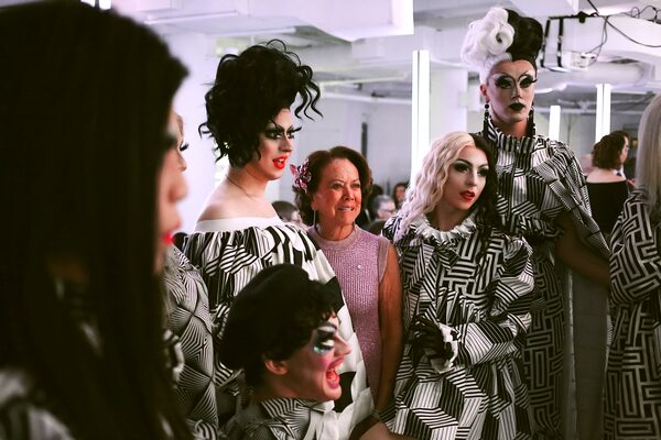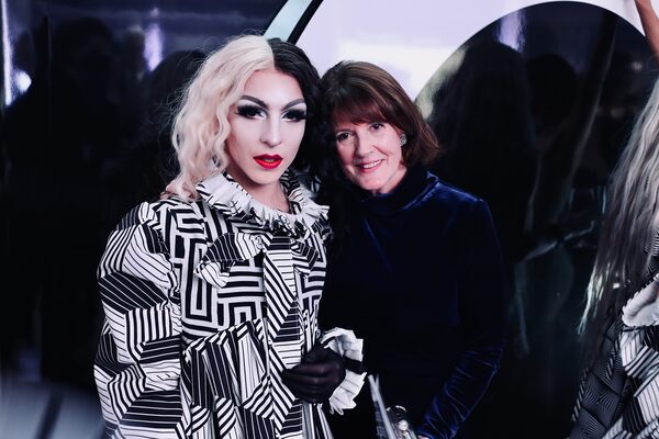 Festivities kicked off with a dinner for 450 hosted by Holt Renfrew that saw, mid-meal, a handful of top models, all Alberta-born, including Heather Marks, Meghan Collison, Hannah Donker and Julia Dunstall, emerge from a cube-shaped structure and sashay their way between tables wearing looks from the retailer. The models were all discoveries of Kelly Streit, the evening’s event chair and boisterous head of Mode Models, who from his quiet corner in Calgary has discovered some of the biggest names to hit runways globally. His be-who-you-are approach to life, which he extended to this latest event, was a hit with guests, who lapped up all things bold and fabulous. I saw philanthropist Ann McCaig surrounded by a gaggle of drag queens posing for photos, and fellow philanthropist Morris Dancyger learning to snap a fan.
