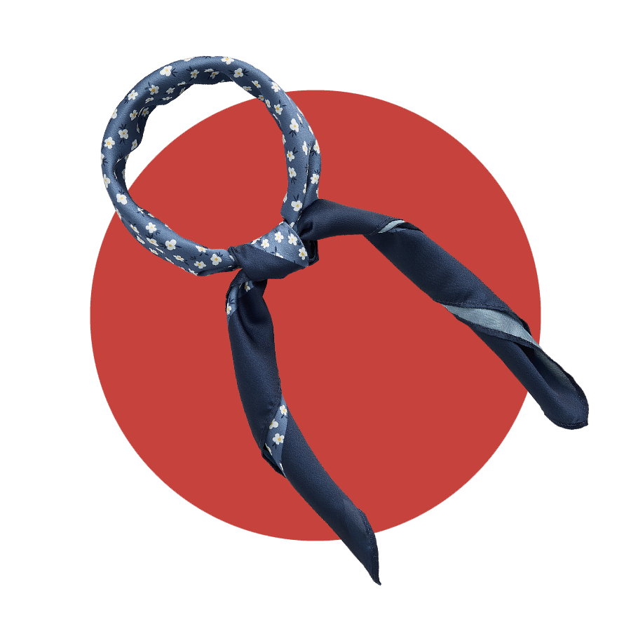 Designed in Quebec and made abroad, this polyester square scarf features a pretty floral print and can be styled a number of different ways including around the neck or as a headband.