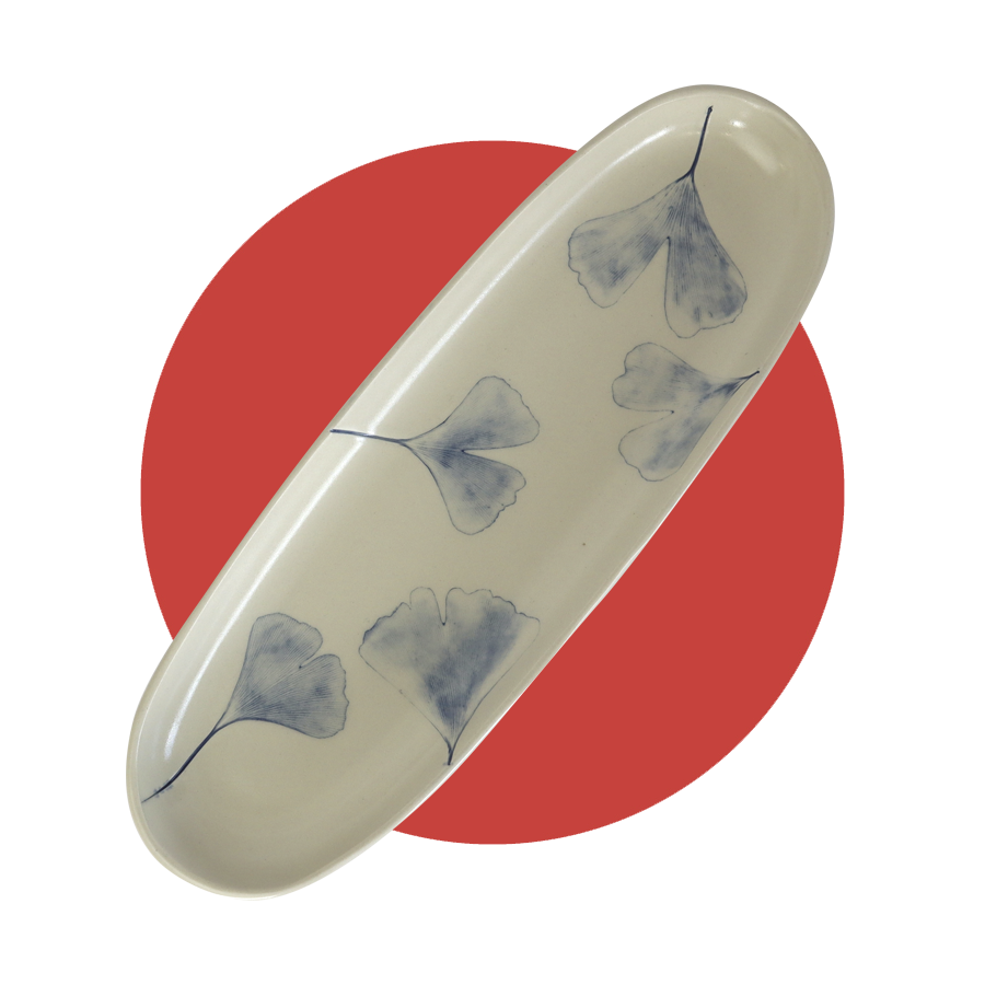 Ceramic artist Geneviève Gallant’s porcelain platters, each 36 centimetres long and 12 centimetres wide, are handmade in Montreal using real ginkgo leaves, so no two are the same.
