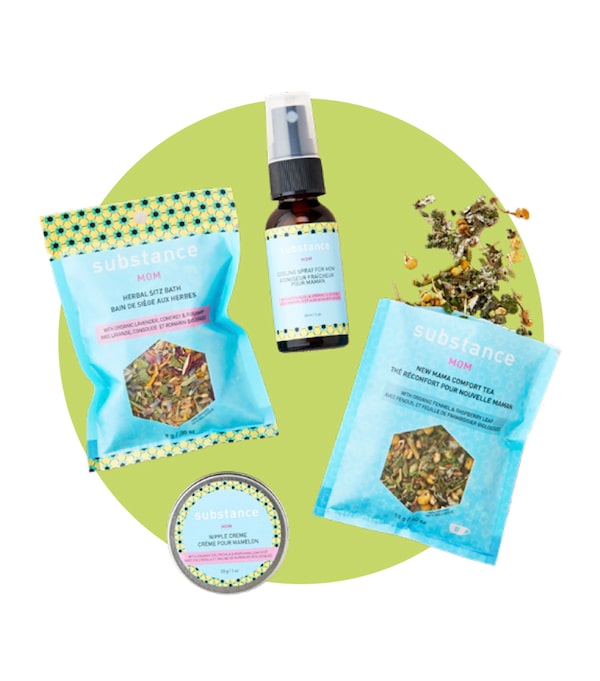 Toronto’s Matter Company offers a range of gift sets, including this kit for postdelivery care. Made with natural ingredients, the products include an herbal sitz bath, cooling spray, nipple cream and more.