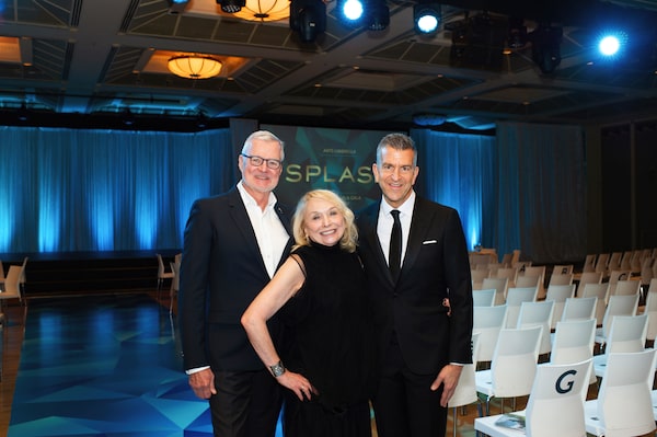 This latest Splash, the 37th edition, was co-chaired by arts givers Christie Garofalo and Bruce Munro Wright, both of whom serve on Arts Umbrella’s board of directors. The event brought together more than 100 works by a plethora of creators from B.C. and beyond, including Dana Claxton, Douglas Coupland, Edward Burtynsky and Elizabeth Zvonar, which were auctioned off throughout the evening. On offer too, between lots, inside the Fairmont Hotel Vancouver, were performances by the very students the gathering supports, namely the Arts Umbrella dance company and the pre-professional musical theatre troupe. Among them out taking it all in: Carol Henriquez, a co-founder of Arts Umbrella, who served as honorary chair; architect Robert Lemon, who recently made a $2-million contribution to the Arts Umbrella Building Campaign in honour of his late partner Robert Ledingham; art consultant Brenda Bradshaw; Nicola Wealth Management president and Arts Umbrella Foundation vice-chair David Sung, and his wife, Tassan; and Paul Larocque, president and CEO of Arts Umbrella.