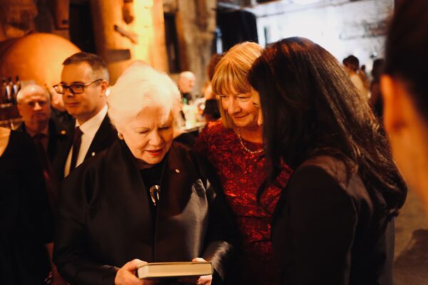 Across from me at dinner was the Honourable Elizabeth Dowdeswell, Lieutenant-Governor of Ontario; on her right was the artist Charles Pachter, who contributed a work titled Handmaid of Honour to the silent auction. The portrait’s subject, Margaret Atwood, was seated to her left and at the table too, was Julia Johnston and photographer Ed Burtynsky, who also contributed to the evening’s auction and has lent his spectacular snaps to past Walrus covers. To my right was Jessica Johnson, executive editor and creative director of The Walrus, and former National Arts Centre CEO Peter Herrndorf, and his wife, Eva Czigler. Also out: philanthropically minded couples including Ira Gluskin and Maxine Granovsky-Gluskin, Gretchen and Donald Ross, Valerie and Andy Pringle and Janelle and Pierre Lassonde; Helen Burstyn, chair of The Walrus Foundation board of directors and her daughter, Amy; and Toronto Mayor John Tory.