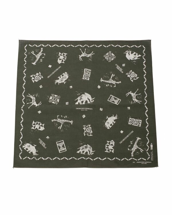 Engineered Garments printed bandana in olive animal print, $25 at Lost & Found.