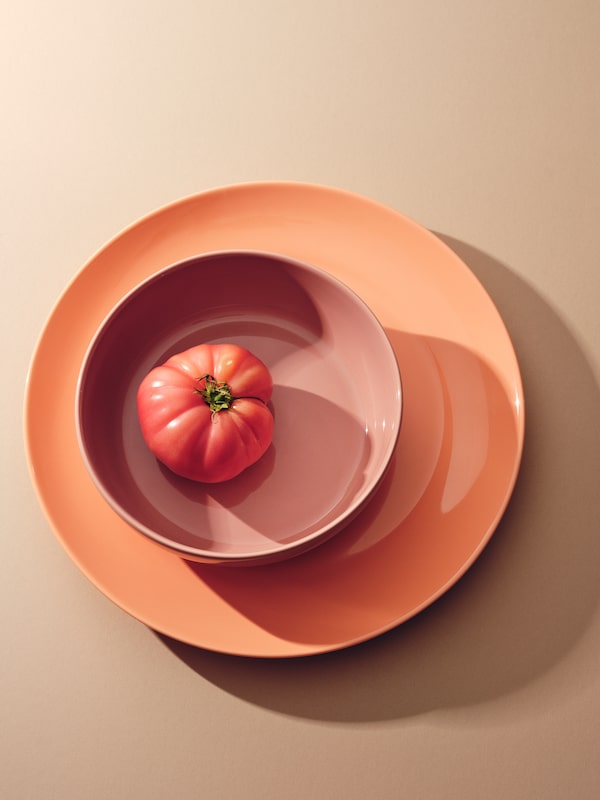 Fors Large Plate in Coral, $45, and Large Bowl in Rose, $36.