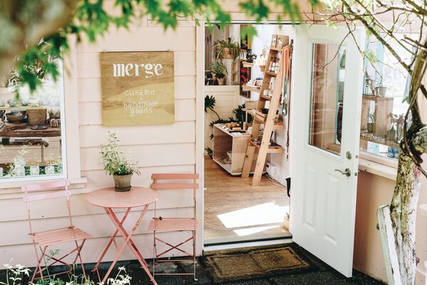 Stroll down an alleyway behind a bank at the west end of Tofino, B.C., and you’ll happen upon a small pink house, the home of local boutique Merge. “Because we’re tucked away, people talk about us more,” owner Laurie Boudreault says of her shop’s secluded location. “We painted it pink to attract the eye.”