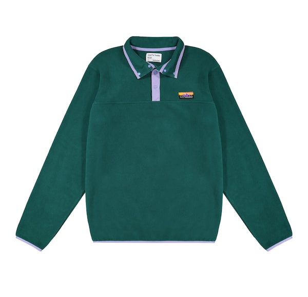 Toronto-based brand Good For Sunday tweaks the more traditional look of a fleece pullover with the use of prismatic colour blocking. This style’s fabric is made with recycled materials, too.
