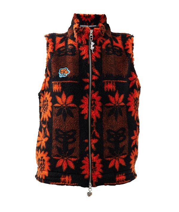 London’s Chopova Lowena brings bright blooms into the drearier months of the year with a vest crafted from a sunflower-print fleece.