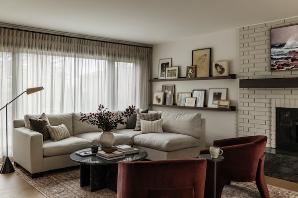 In deciding what to keep, she partly leaned on the advice of her designer, Lori Sellmer. “The original fireplace was in great shape,” she says. “We just painted the bricks and replaced the hearth with a more modern stone.”
