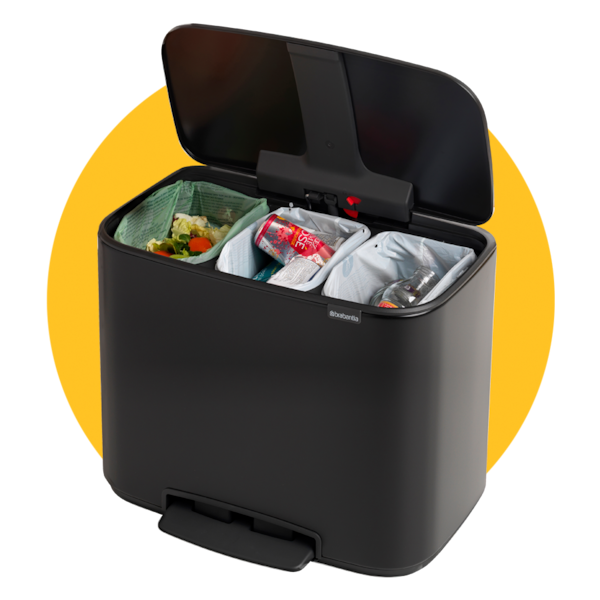 The Type A Tri-Sorter Stainless Steel Garbage Can is similar to the Bo Step On. However, each container has a capacity of 20 litres, better for busy kitchens and large families. Each container also has its own foot lever, helping to minimize the risk of cross contamination between the bins.