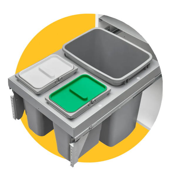 When all-in-one units don’t work, Fancy points out: “You don’t need a large built-in system to get organized. Even a simple lidded compost bin near the prep area can make daily cleanup easier and keep food waste from piling up in the main garbage.”