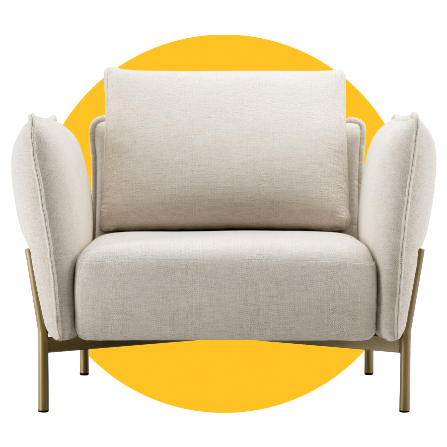 With the Le Montreuil Chair, slender gold legs hold a series of overstuffed cushions together, creating a soft, basket-like seat reminiscent of a childhood pillow fort. The piece is made by Trica, a Quebec-based brand whose factory is located in Saint-Jérôme, north of Montreal.