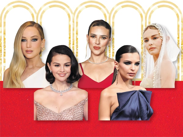 Hung Vanngo’s notable beauty moments: Jennifer Lawrence in 2023, Selena Gomez and Scarlett Johansson in 2025, Emily Ratajkowski and Kate Bosworth in 2016.Photo illustration by The Globe and Mail/Getty Images/The Globe and Mail
