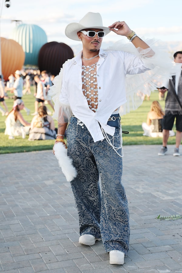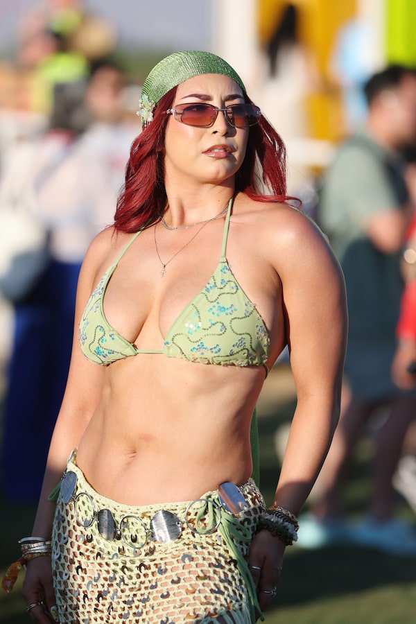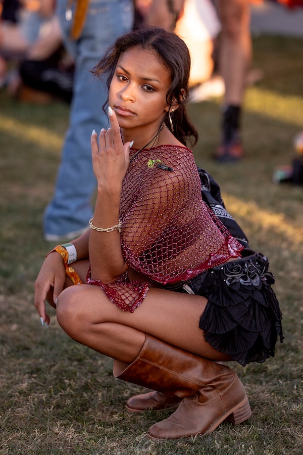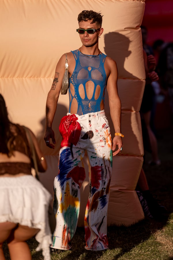 It’s a hotbed for brands courting festivalgoers, too. The Gap, E.L.F. cosmetics, Barbie, Marc Jacobs and Nike are just a few major brands with on-site activations. This year, attendees embraced the shimmering pop-girl aesthetic that headliner Sabrina Carpenter flaunted on stage, along with club gear made to wear from day to night, and plenty of “desert boho energy,” as coined by Women’s Wear Daily.