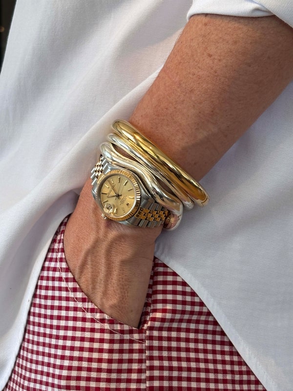 Vancouver-based fashion stylist Lindsay Wilkins recommends using your favourite metal as the focal point and adding just one or two pieces of an alternative material. “Think in twos – two chains or lengths, two bracelets, two earrings in each ear, and over time build on that,” she said.