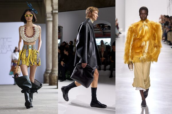 Looks by designer Stella Jean, left, and Bottega Veneta.Stella Jean; Bottega/Supplied