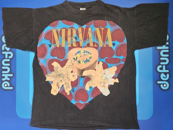 Faded from black to grey over countless wash cycles and bearing album art from Nirvana’s 1993 single, Heart-Shaped Box, it’s one of many thousands of licensed tees produced during the band’s heyday. Unlike most others, however, it was made by the now-defunct Canadian brand Backstage Pass – an extremely rare distinction that helped it fetch US$13,544 (more than $18,000) in a private sale in early 2025.