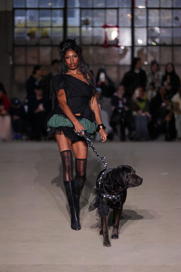 The clothing and models weren’t the only ones telling a story of perseverance: Sagradesa also collaborated with Toronto Animal Services, which brought a handful of rescue dogs to the show. The pups, many of whom have had their own tough journeys, excitedly trotted down the runway alongside some of the models and were available for adoption on-site after the show.