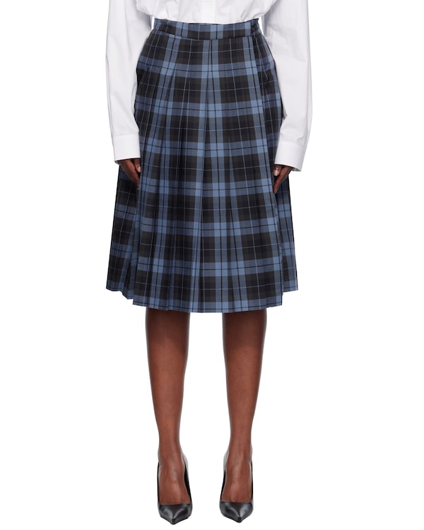 Pushbutton navy plaid midi skirt, $369 (from $670) at Ssense.