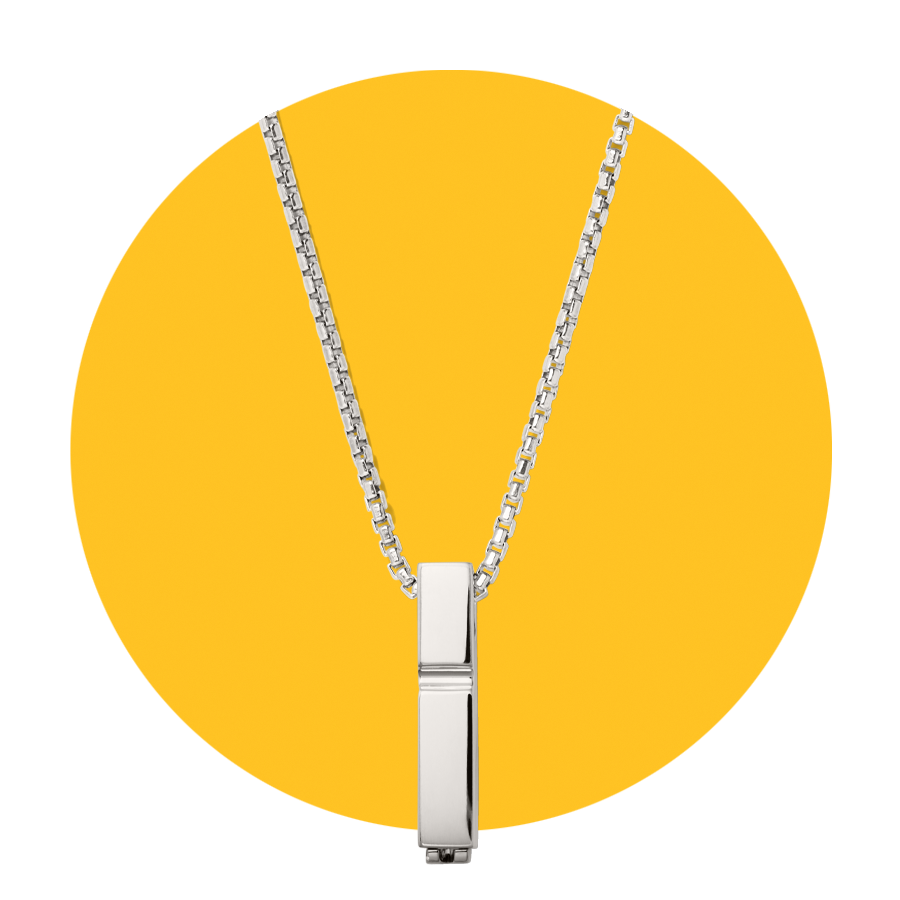 A subtle take on the ubiquitous initial necklace, this Mejuri design combines a 22-inch chain with a silver cylinder pendant. It’s made from 95-per-cent recycled sterling silver, and sleek enough to be worn every day.