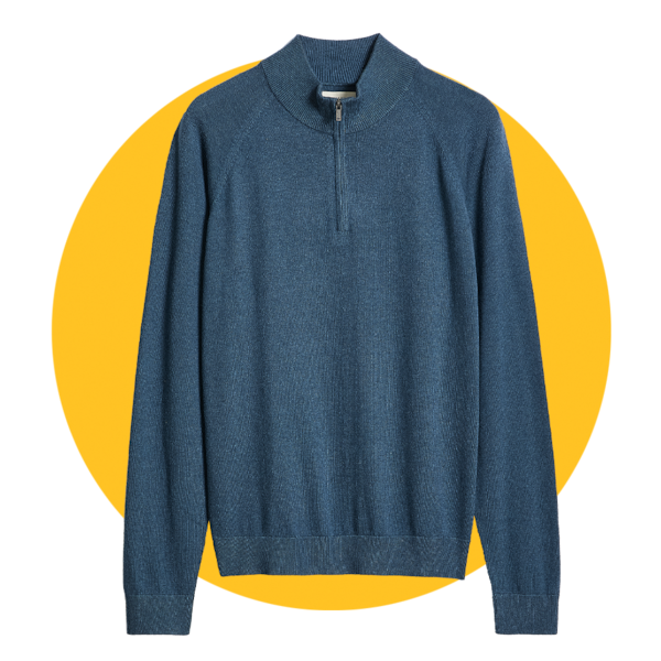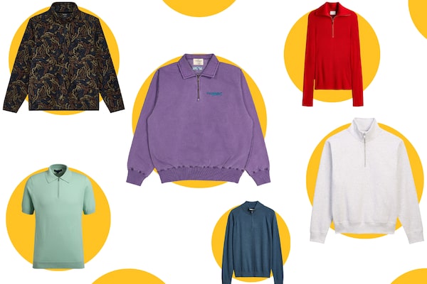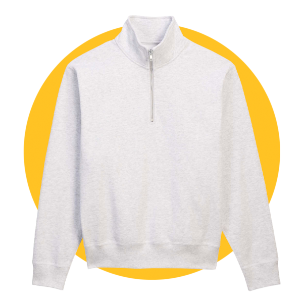 The fit is key as well for this trend, especially for men. You want “that more relaxed to oversized fit,” says Lathe-LeBlanc. “If it’s too tight, it’s really going to look a little dorkish. It won’t exactly hit what’s making it really look exciting at the moment.” He also suggests that men shouldn’t wear a quarter zip “without a T-shirt or a shirt underneath.”