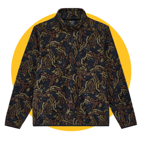 A lighter version of Quebec City-based Hooké’s popular polar fleece toppers, this quarter zip features a unique pattern by illustrator Brett Stenson, who has also worked with brands such as Saxx and Patagonia. Nice for transitional weather and cooler evenings, it is made with 100-per-cent recycled polyester.
