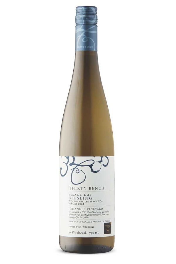 Thirty Bench continues to produce riesling from vines planted between 1980 and 1984 in various blocks. These parcels are identified by defining features, such as Wood Post or Steel Post, which denote the material used to anchor the trellis system. The Triangle block is named for the shape of the planting at the end of the property on the Beamsville Bench, which produces a light and fruity expressions of riesling like this one. Expect an appealing mix of sweet and sour fruit flavours with well-balanced acid and sweetness. To my taste, this wine is ready to drink, but will continue to gain honeyed complexity with more bottle age. This has 11.3 per cent ABV and 18 g/litre r.s. Drink now to 2029. Available in Ontario.
