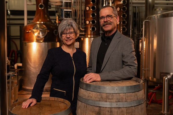 Fifth-generation farmers John Cote, right, and Barb Stefanyshyn-Cote started distilling 10 years ago.Black Fox Farm & Distillery/Supplied