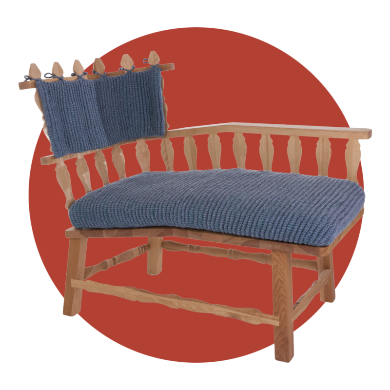 The Get Your Feet Up bench is hand-crafted on Fogo Island, Newfoundland. The design was inspired by a style of old wooden sofa found in kitchens to catch the tired bodies of overworked chefs.