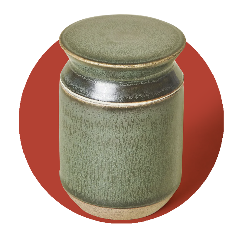 The couple love to collect pottery, both vintage and new, and display it on the open shelving above their backsplash. Sources include the shops Souvenir Studios and Mararamiro in Toronto, as well as Seth Rogen’s brand, Houseplant.