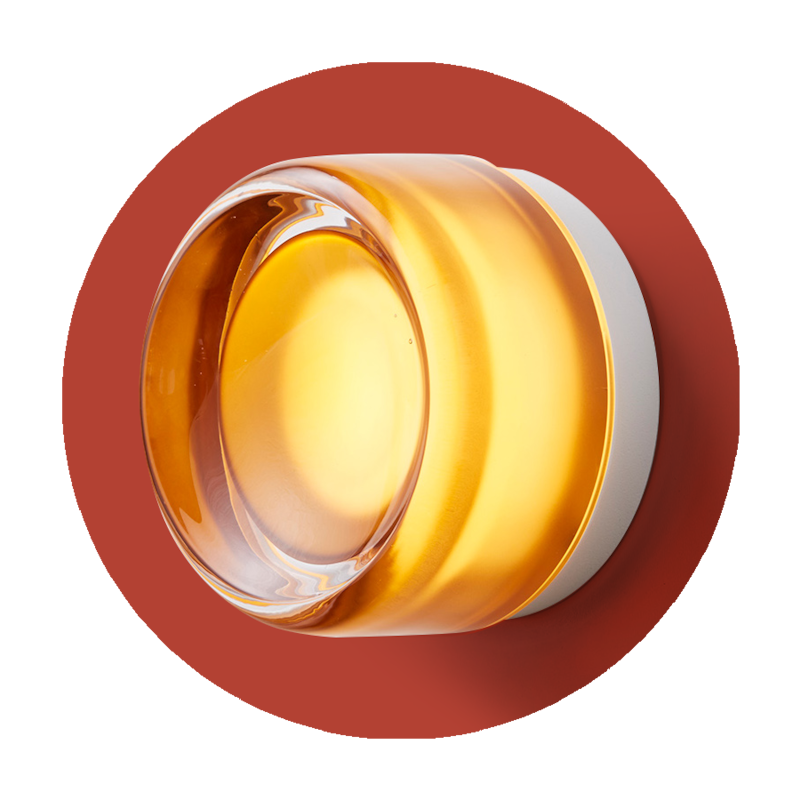 The lights in the kitchen, from Rich Brilliant Willing, cast an amber glow. “It looks particularly beautiful at night,” Leydon says.