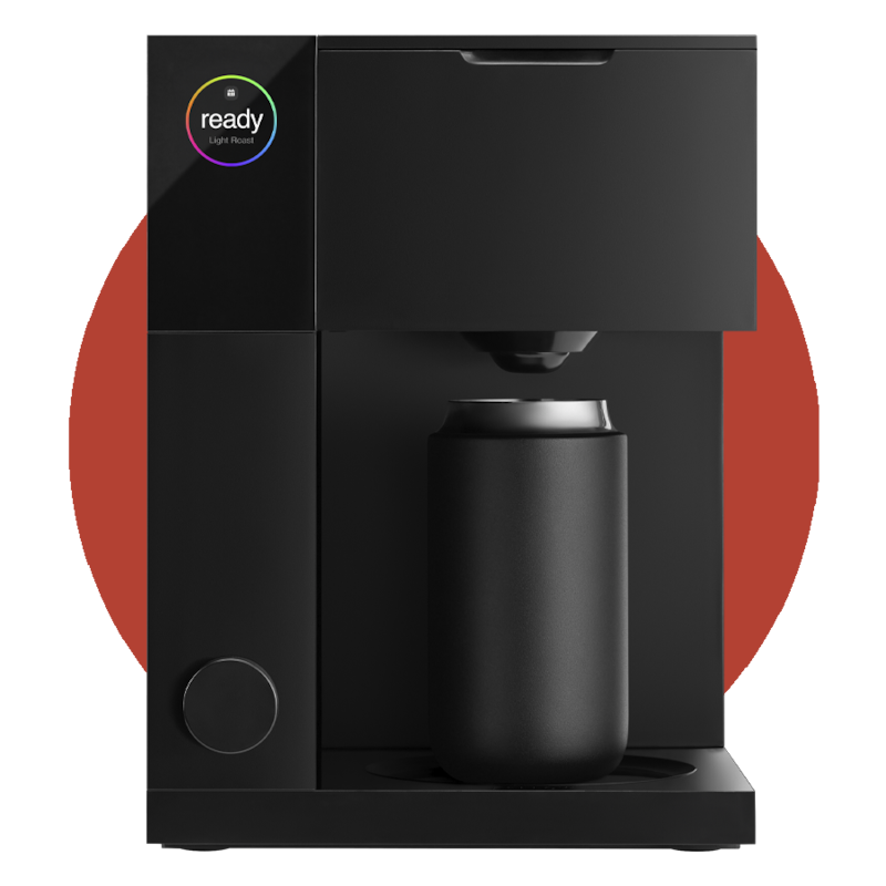 With reduced storage, Leydon and Syer prefer a compact coffee maker. The Aiden model is both small and minimal in appearance, with a matte black finish.