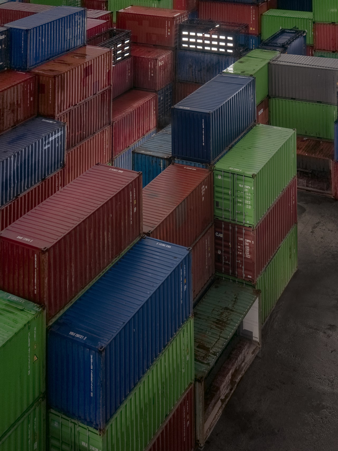 Its maze of blue, green and rust red containers, some hollowed out for front row seating, towered against the dusky sky. Bells tolled as the opening notes of Nick Cave and The Bad Seeds’ murder ballad Where the Wild Roses Grow sounded out, setting the rhythm of the models’ slow, deliberate walk.