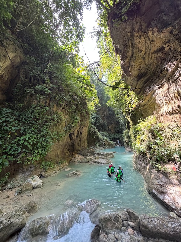 Yet here I am, standing on a slippery limestone crevice overlooking the turquoise waters of Kawasan Falls on the island of Cebu. My heart pounding and my palms slick with river water, I am petrified to jump off the cliff and I almost lose my nerve – but for the shame of failing the “mandatory” first stop of Kawasan Canyoneering’s three-kilometre journey through the falls. The journey I voluntarily signed up for.