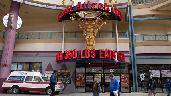 Heart problems and obesity are a running joke at the diner, where customers who weigh more than 350 pounds eat free.