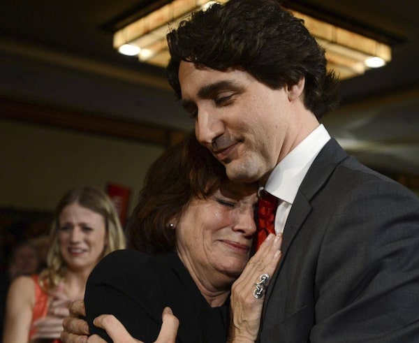 Justin Trudeau and his mother, Margaret Trudeau, celebrate his win.Adrian Wyld/The Canadian Press