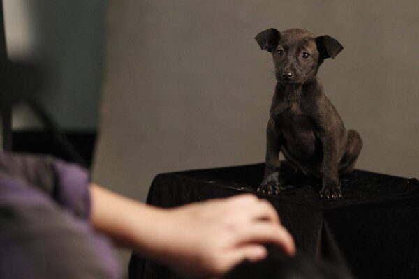 In this photo taken on Monday, April 9, 2012, in a makeshift studio, Taiwanese photographer Tou Chih-kang tries to make a portrait of a dog in the final moments of its life before being put down by lethal injection at a shelter in Taoyuan, northern Taiwan. Tou has been visiting dog shelters for two years now, making human-like portraits that give a sense of dignity and esteem to some 400 canines, in hopes of educating the public on the proper care of pets. This year Taiwanese authorities will kill an estimated 80,000 stray dogs at 38 pounds scattered throughout the island. (AP Photo/Wally Santana)Wally Santana/The Associated Press