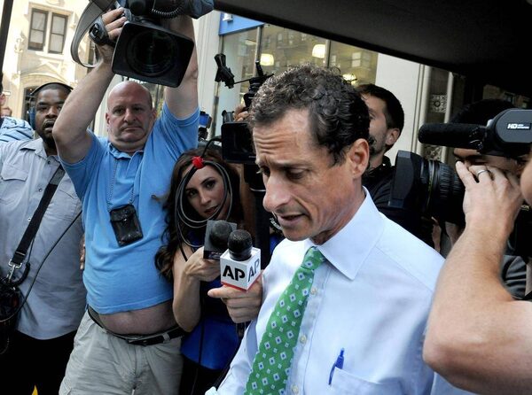 News crews try to get comments from Anthony Weiner as he leaves his Park Avenue apartment, Wednesday, July 31, 2013, in New York.Louis Lanzano/The Associated Press