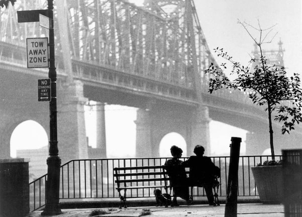 Certainly, it is a movie director's favourite device, an inanimate character that has starred in many movies. In the 1997 film Good Will Hunting, Robin Williams delivers, as therapist Sean Maguire, a moving speech about really living life to Matt Damon's character, Will Hunting. The park bench they're sitting on serves as a small island in a sea of moving people, where the two men, of very different perspectives, are free of the distractions other places might have. The bench is where truth can be told, a levelling device. In 1994's Forrest Gump, the bench is where Tom Hanks's character spends about 80 per cent of the film, telling the story of his life to anyone who happens to sit beside him. The bench brings together people who might otherwise never have met – an agent that forces encounters and gives those who find themselves sitting there the opportunity to engage with the other. In the 1979 film Manhattan, the scene in which Woody Allen's and Diane Keaton's characters are silhouetted against a new dawn as they sit on a bench by New York's Queensboro Bridge suggests the beauty of connection amid the isolating anonymity of a big city.