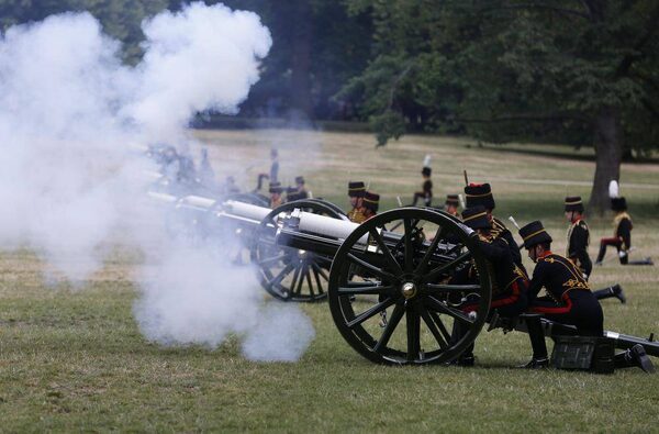 The King's Troop Royal Horse Artillery fire a 41 Royal Gun Salute in Green Park, to mark the birth of a baby boy of Prince William and Kate, on July 23, 2013.Sang Tan/The Associated Press