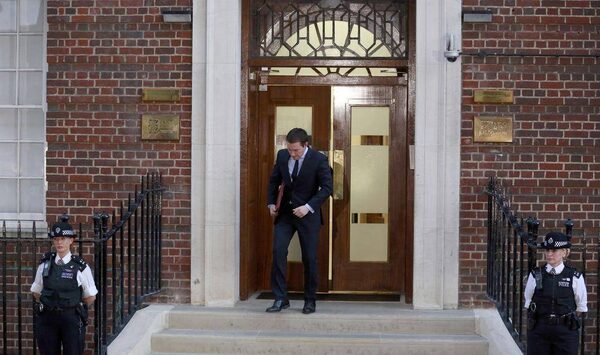 Ed Perkins of Kensington Palace prepares to hand over the official birth notice outside the Lindo Wing of St. Mary’s Hospital to a waiting driver who will take it to Buckingham Palace. Catherine, the Duchess of Cambridge, gave birth on Monday to a baby boy, who becomes third in line to the British throne.CATHAL MCNAUGHTON/Reuters