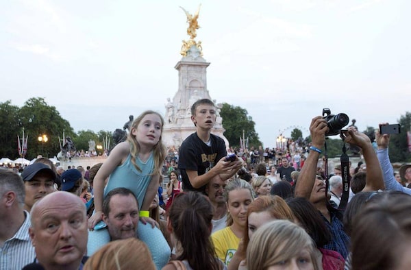 Crowds of people try to look at a notice formally announcing the royal baby’s birth outside Buckingham Palace.NEIL HALL/Reuters